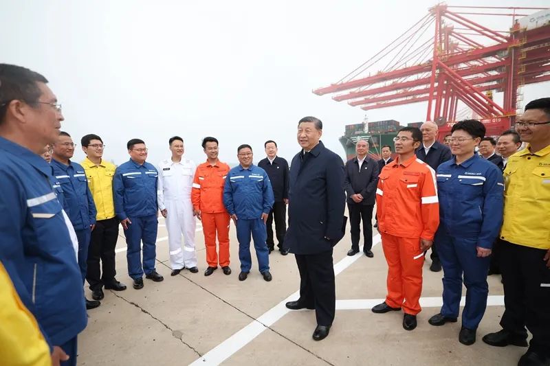 22日下午,習(xí)近平首先來到日照港考察。日照港是重要的能源和大宗原材料中轉(zhuǎn)基地,近年來推進智慧化、綠色化建設(shè),建成順岸開放式全自動化集裝箱碼頭。習(xí)近平聽取山東省港口發(fā)展建設(shè)和日照港規(guī)劃布局等情況介紹,并察看全自動化集裝箱碼頭作業(yè)場景。他說,日照港是改革開放后新建的港口,近年來推進科技創(chuàng)新,將傳統(tǒng)港口改造升級為現(xiàn)代化港口,不僅貨物吞吐量躋身全國前列,還積累了通過傳統(tǒng)產(chǎn)業(yè)改造升級發(fā)展新質(zhì)生產(chǎn)力的經(jīng)驗,值得肯定。習(xí)近平親切慰問港口科技工作者、運營人員、航運人員,希望大家再接再厲、繼續(xù)奮斗,推動日照港管理運營更上一層樓。