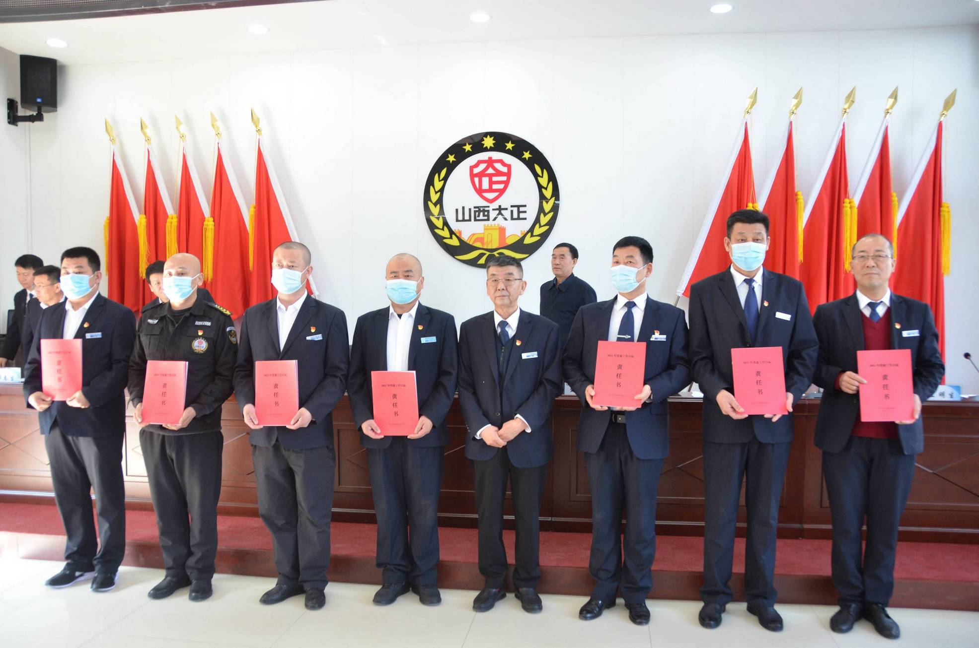 會(huì)上,黨委書記、董事長(zhǎng)張躍生向公司各子公司、各部門、各黨支部負(fù)責(zé)人頒發(fā)了黨建目標(biāo)責(zé)任書、黨風(fēng)廉潔目標(biāo)責(zé)任書,黨委副書記、總經(jīng)理趙培宏向公司各子公司、各部門負(fù)責(zé)人頒發(fā)綜合治理目標(biāo)責(zé)任書、安全生產(chǎn)目標(biāo)責(zé)任書。大會(huì)在《大正保安之歌》歌聲中圓滿落幕。