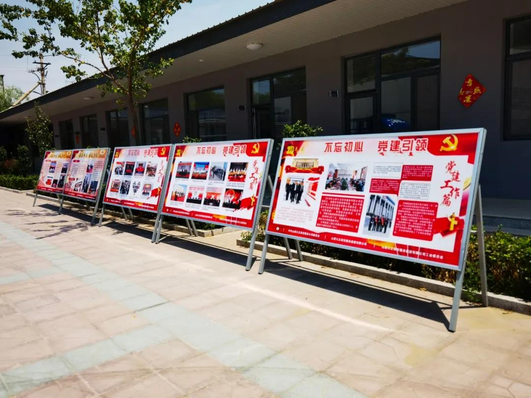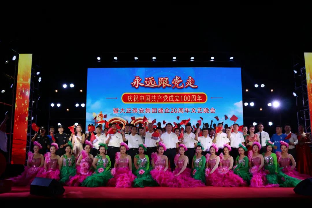 公司大院紅旗飄揚,慶祝中國共產(chǎn)黨成立100周年“百年華誕、世紀(jì)獻禮”大型標(biāo)識牌奪目耀眼,二十三塊反映山西大正保安服務(wù)集團有限公司建企20周年展板向人們無聲講述公司20年來非凡成就。