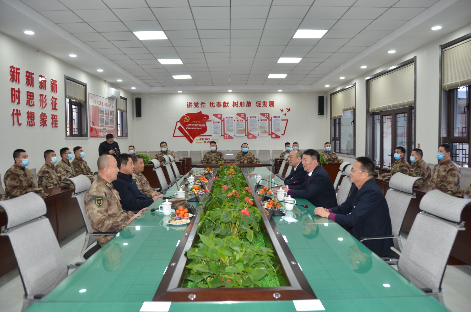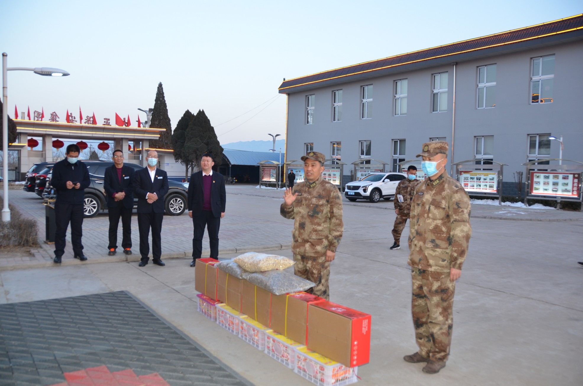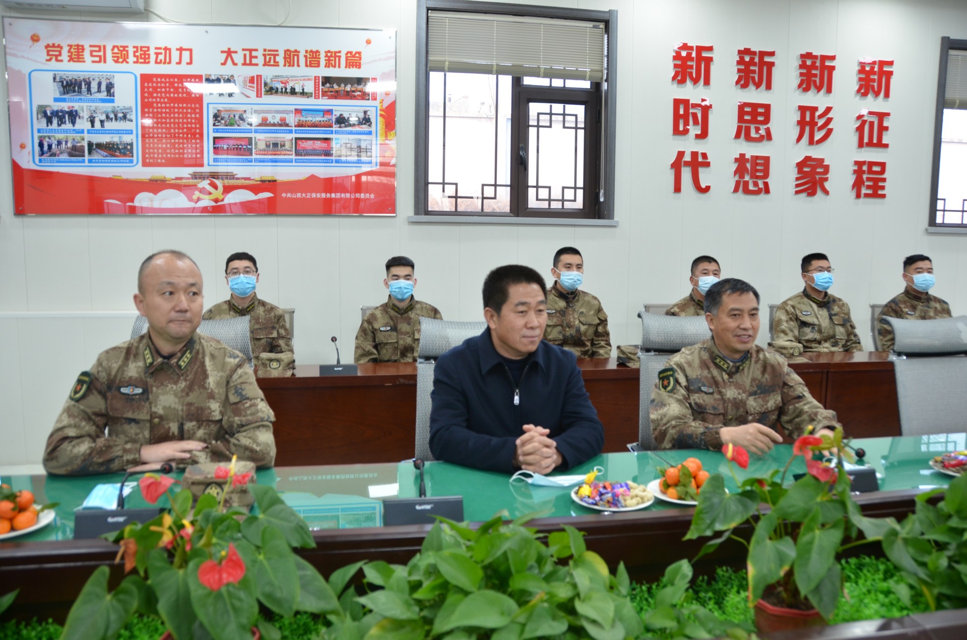 在春節(jié)即將到來(lái)之際,為營(yíng)造關(guān)心支持國(guó)防和軍隊(duì)建設(shè)的濃厚社會(huì)氛圍,傳遞上級(jí)黨委、政府的關(guān)心關(guān)愛,1月29日,忻府區(qū)委常委、常務(wù)副區(qū)長(zhǎng)孫曉磊,忻府區(qū)人武部政委劉啟國(guó)、部長(zhǎng)李強(qiáng)一行蒞臨我公司進(jìn)行節(jié)前慰問(wèn),為物業(yè)公司民兵應(yīng)急連隊(duì)員帶來(lái)了新春祝福和慰問(wèn)品。集團(tuán)公司領(lǐng)導(dǎo)班子成員趙培宏、王明生、呂雙明參加慰問(wèn)座談活動(dòng)。