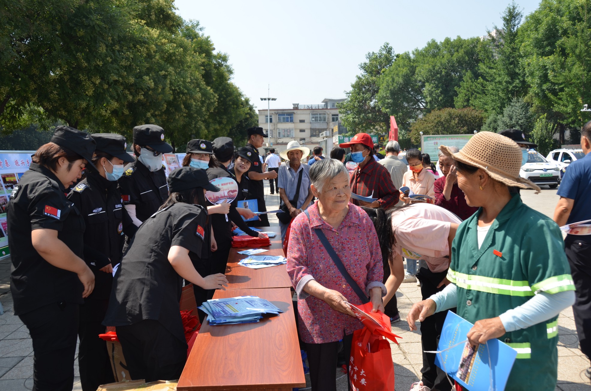 主題宣傳活動后,領(lǐng)導(dǎo)們認真觀看了宣傳展板。公司員工及時向過往行人發(fā)放宣傳彩頁及扇子、圍裙等禮品。