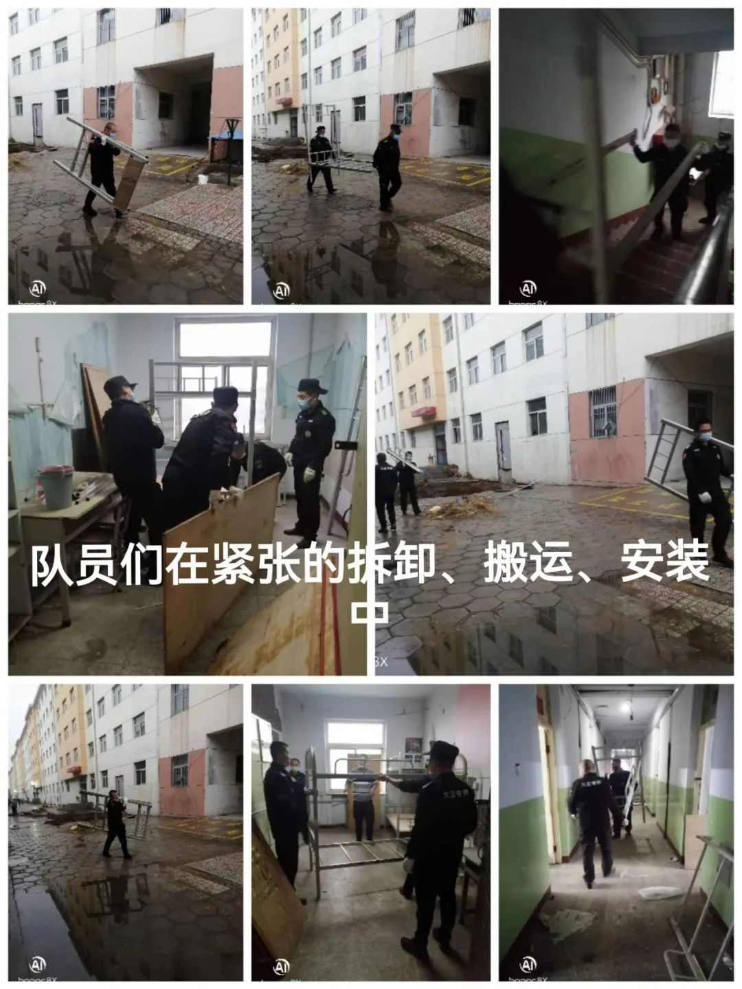 大正人在緊張有序的完成床鋪的拆卸、搬運、 安裝