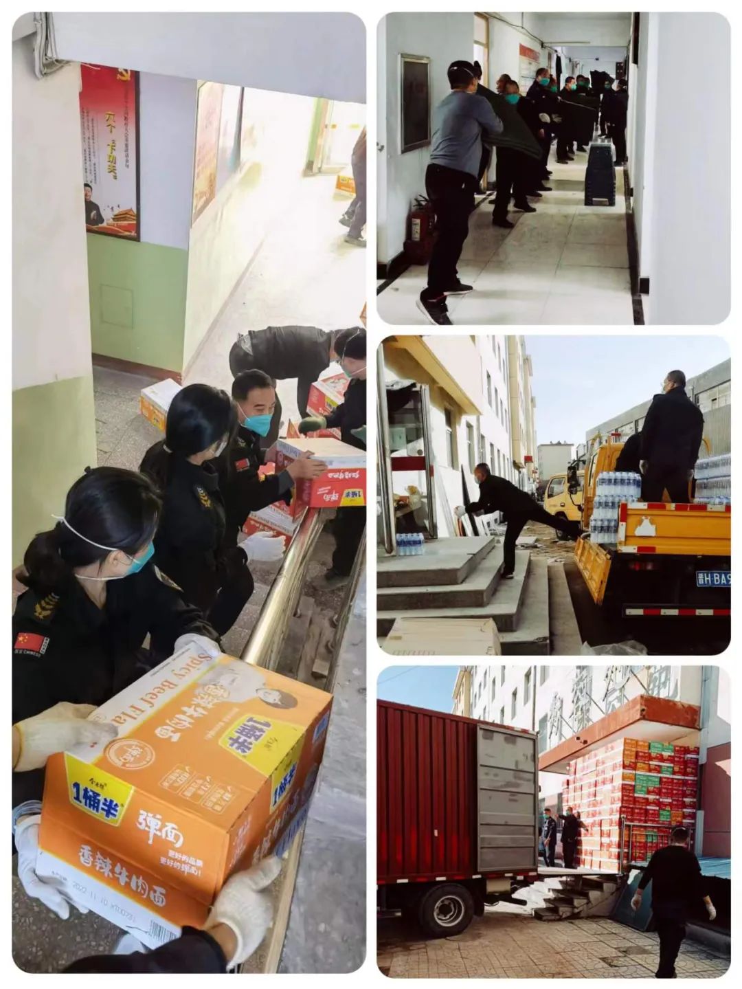 大正集團公司機關(guān)人員、億通公司、刻章公司等齊心協(xié)力完成師院東區(qū)物資分發(fā)