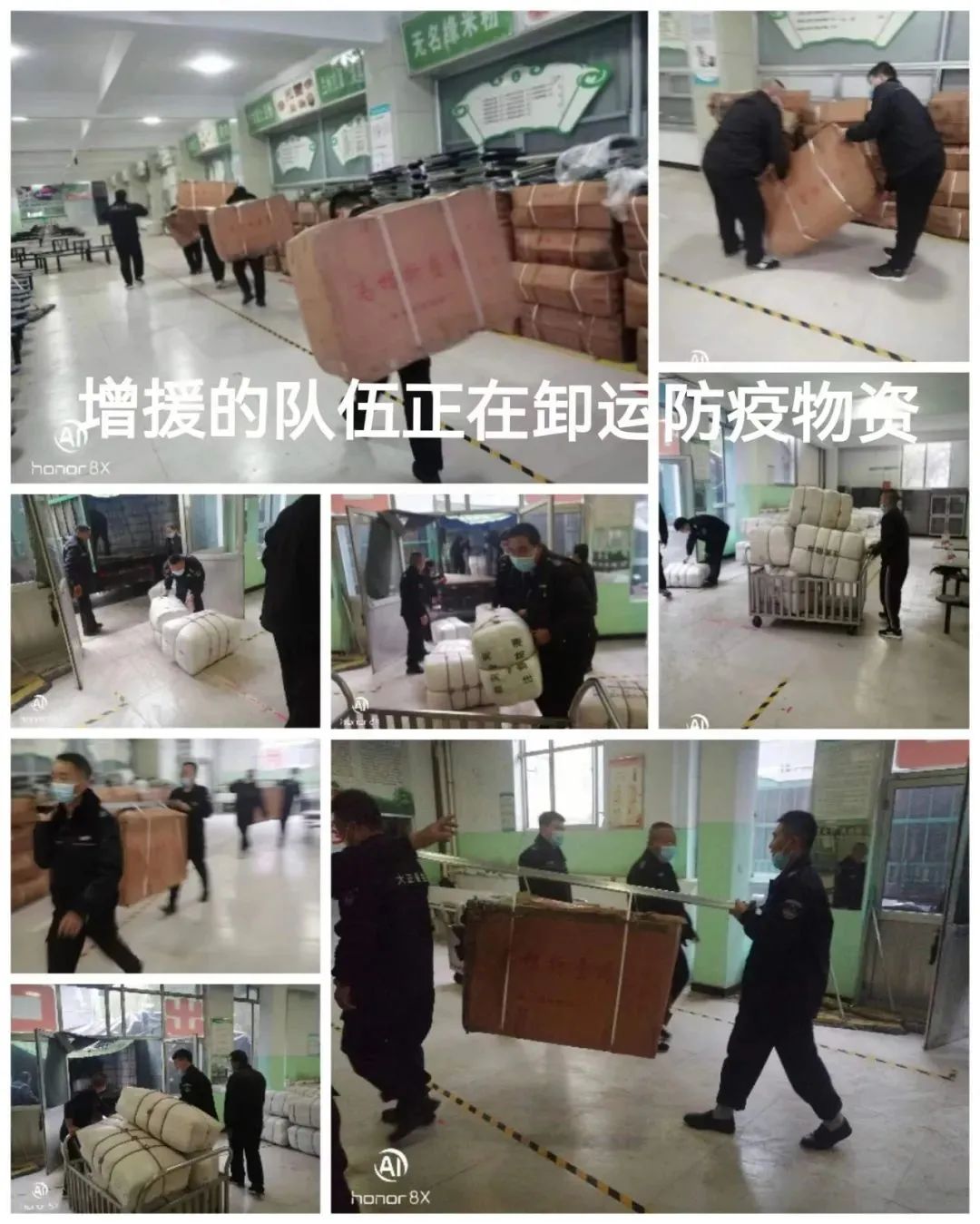 大正人增員隊伍正在卸運防疫物資