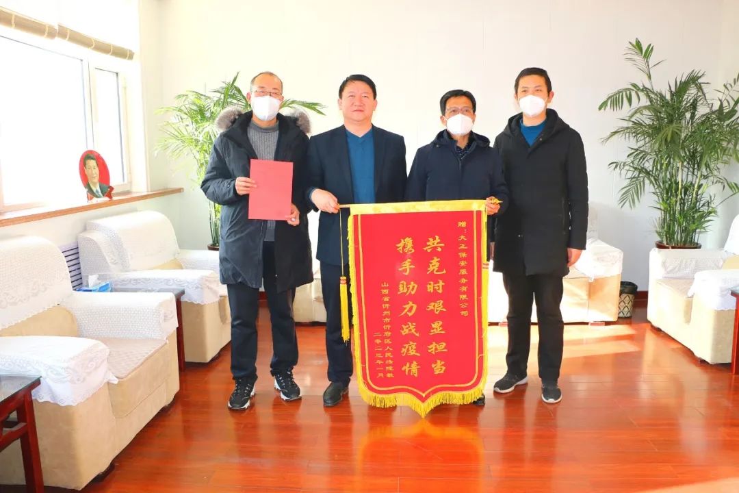 1月9日上午,忻府區(qū)法院黨組成員、副院長黃偉,黨組成員、政治部主任焦旭林帶著寫有“共克時艱顯擔(dān)當 攜手助力戰(zhàn)疫情”的錦旗和一封感謝信來到了山西大正保安服務(wù)集團有限公司,表達對保安公司在疫情防控中無私無畏、甘愿付出的誠摯謝意。大正保安集團公司黨委副書記、總經(jīng)理趙培宏、黨委委員、副總經(jīng)理王明生接洽。自2022年11月6日忻府區(qū)突發(fā)疫情以來,山西大正保安服務(wù)集團有限公司駐忻府區(qū)法院勤務(wù)點的隊員們在陳曉東隊長的帶領(lǐng)下,積極響應(yīng)疫情防控各項要求,除在保障法院關(guān)鍵時期平穩(wěn)運行外,保安公司職員還能夠挺身而出,積極投身防疫點值守、后勤保障、車輛運行、機關(guān)防疫消殺等方面,以實際行動為忻府區(qū)法院疫情防控及機關(guān)安保工作做出了突出貢獻。越是緊要關(guān)頭,越能映照初心;越在關(guān)鍵時刻,越顯擔(dān)當使命。面對突如其來的疫情“大考”,大正保安集團積極響應(yīng)號召,主動、迅速地配合我院防疫部署,精心服務(wù)群眾、嚴格執(zhí)行命令、防范意識到位,助力織密織牢疫情防控網(wǎng),充分展示了大正保安人的職業(yè)素養(yǎng)與責(zé)任擔(dān)當。幾年來,山西大正保安服務(wù)集團有限公司駐區(qū)法院全體職員,以法院為家,服從工作需要,積極參與各項審判事業(yè),做到聞令而動,成為不可或缺的中堅力量,為法院跨越式發(fā)展提供了巨大支持。