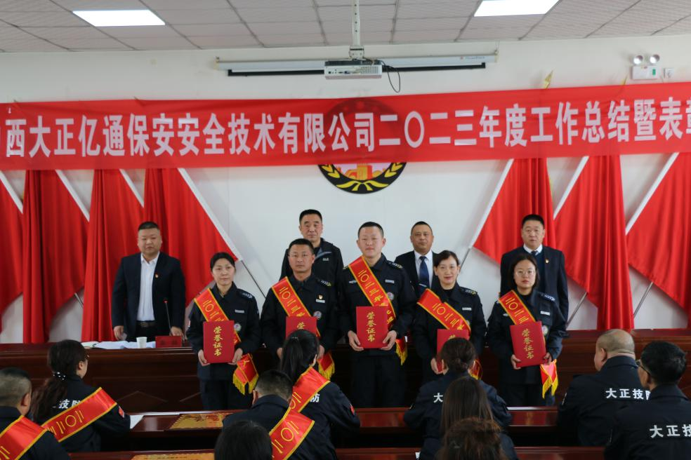 一年春作首,萬事實(shí)為要,近日,山西大正億通保安安全技術(shù)有限公司召開了2023年度工作總結(jié)暨表彰大會(huì)。會(huì)議在總結(jié)成績(jī)、表彰先進(jìn)的同時(shí)明確了2024年奮斗目標(biāo),動(dòng)員億通全體員工以集團(tuán)公司年度工作計(jì)劃及發(fā)展規(guī)劃為指引務(wù)實(shí)擔(dān)當(dāng)、開拓進(jìn)取,為推動(dòng)億通公司創(chuàng)新發(fā)展努力工作,為集團(tuán)公司高質(zhì)量發(fā)展貢獻(xiàn)力量。集團(tuán)公司董事、副總經(jīng)理張瑞東出席會(huì)議并講話,億通公司經(jīng)理張龍作2023年度《團(tuán)結(jié)奮進(jìn)創(chuàng)佳績(jī) 真抓實(shí)干譜新篇》工作報(bào)告,并就2024年工作進(jìn)行了安排部署,會(huì)議由億通公司副經(jīng)理袁園主持。