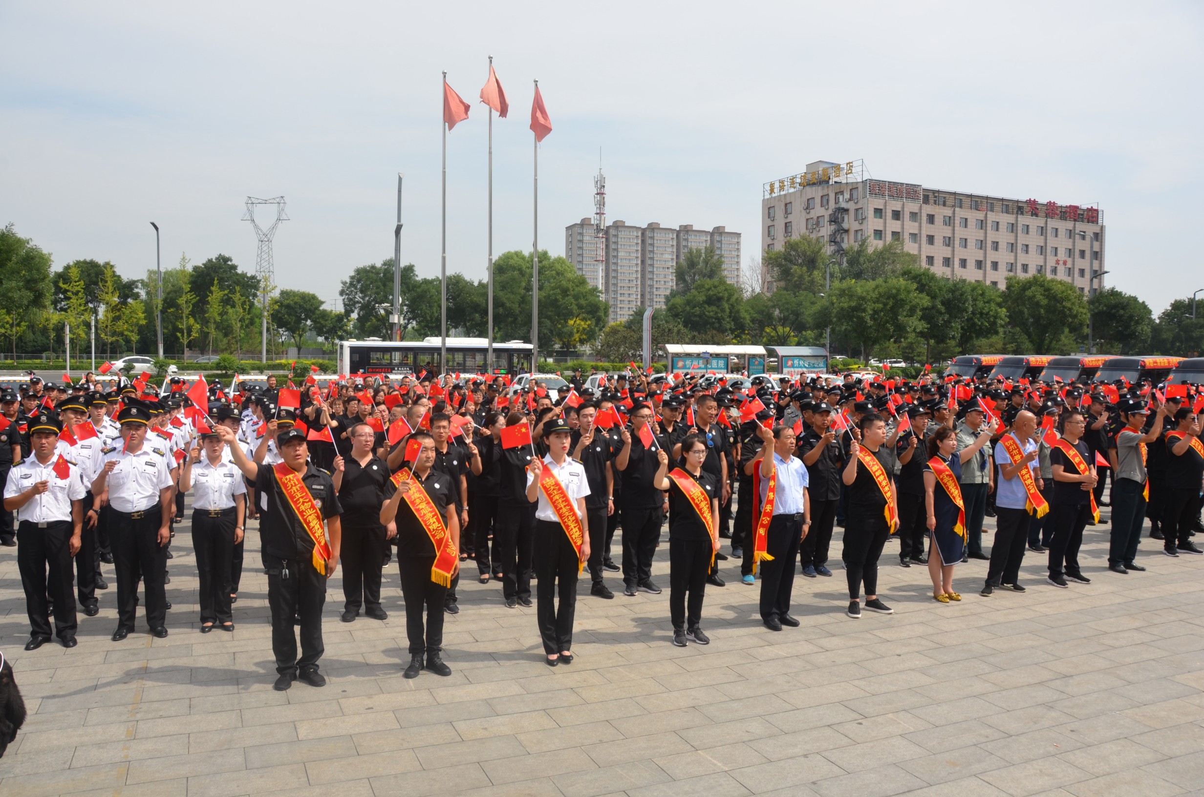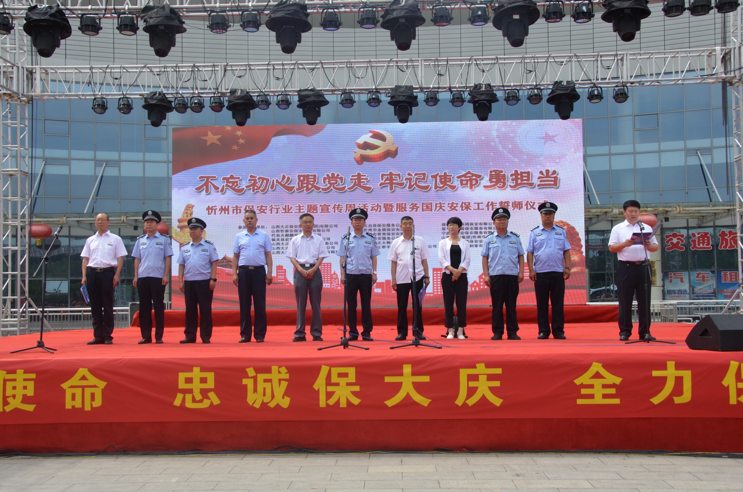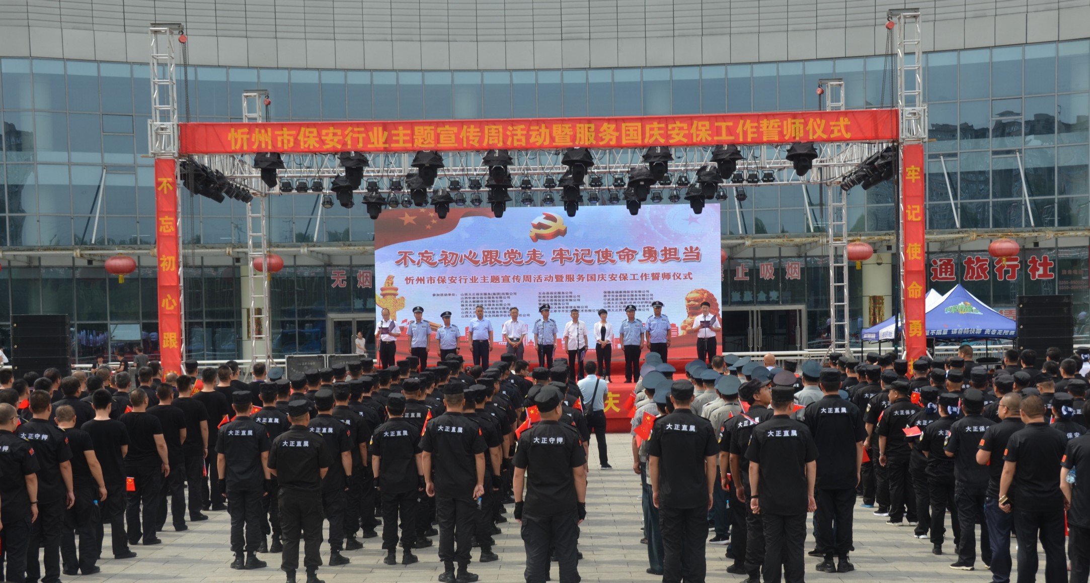 7月24日,忻州市公安局、忻州市保安協(xié)會會同山西大正保安服務(wù)有限公司、忻州市公安局直屬分局、忻州市公安局忻府分局及全市18家保安企業(yè)在忻州市客運中心與全國各地同步舉行保安行業(yè)“不忘初心跟黨走、牢記使命勇?lián)?dāng)”主題宣傳周活動暨服務(wù)國慶安保工作誓師儀式。