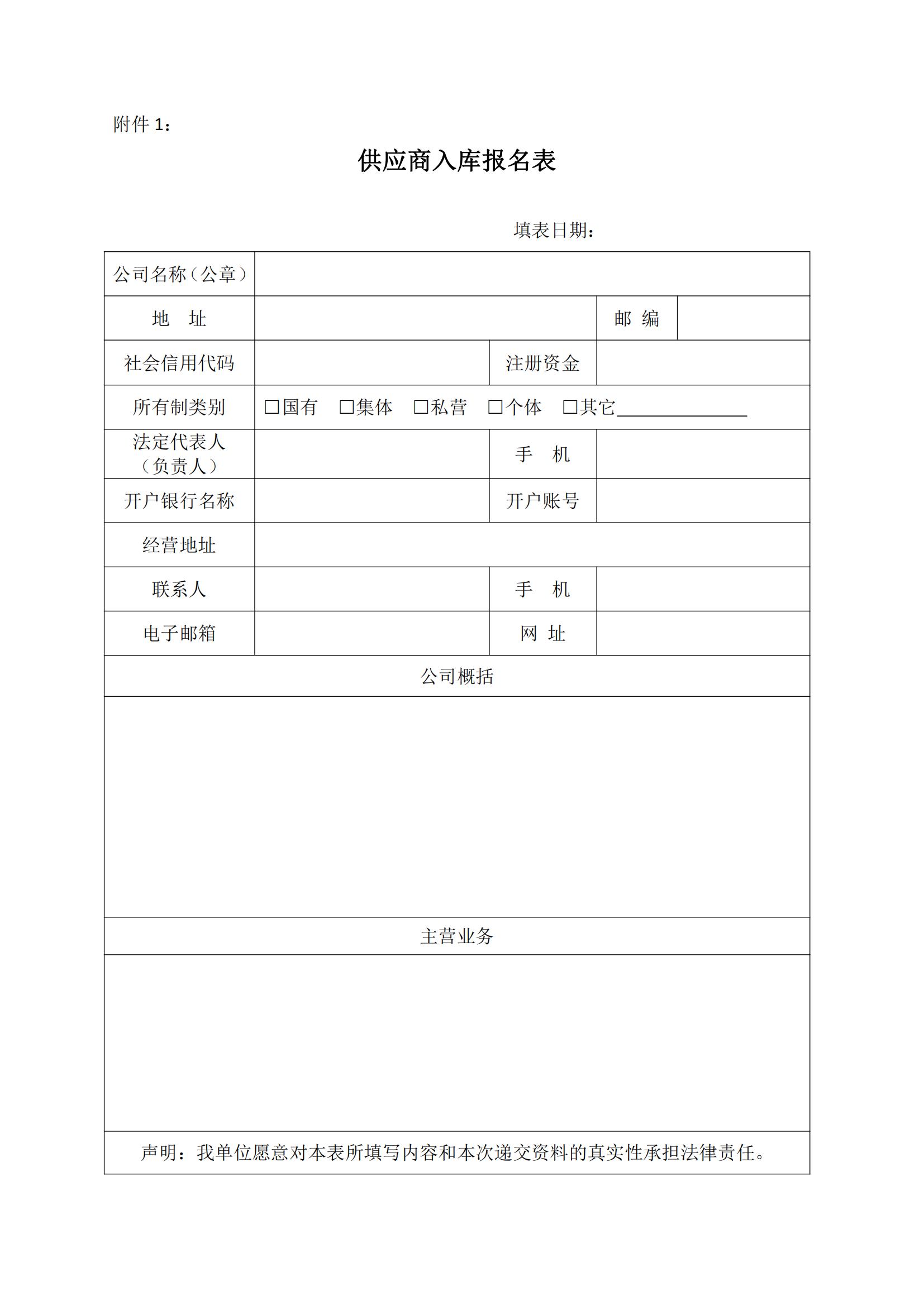為滿足我公司采購工作需求,現(xiàn)公開征集合格的供應(yīng)商加入我公司“供應(yīng)商數(shù)據(jù)庫”,歡迎符合條件的供應(yīng)商參加報名。