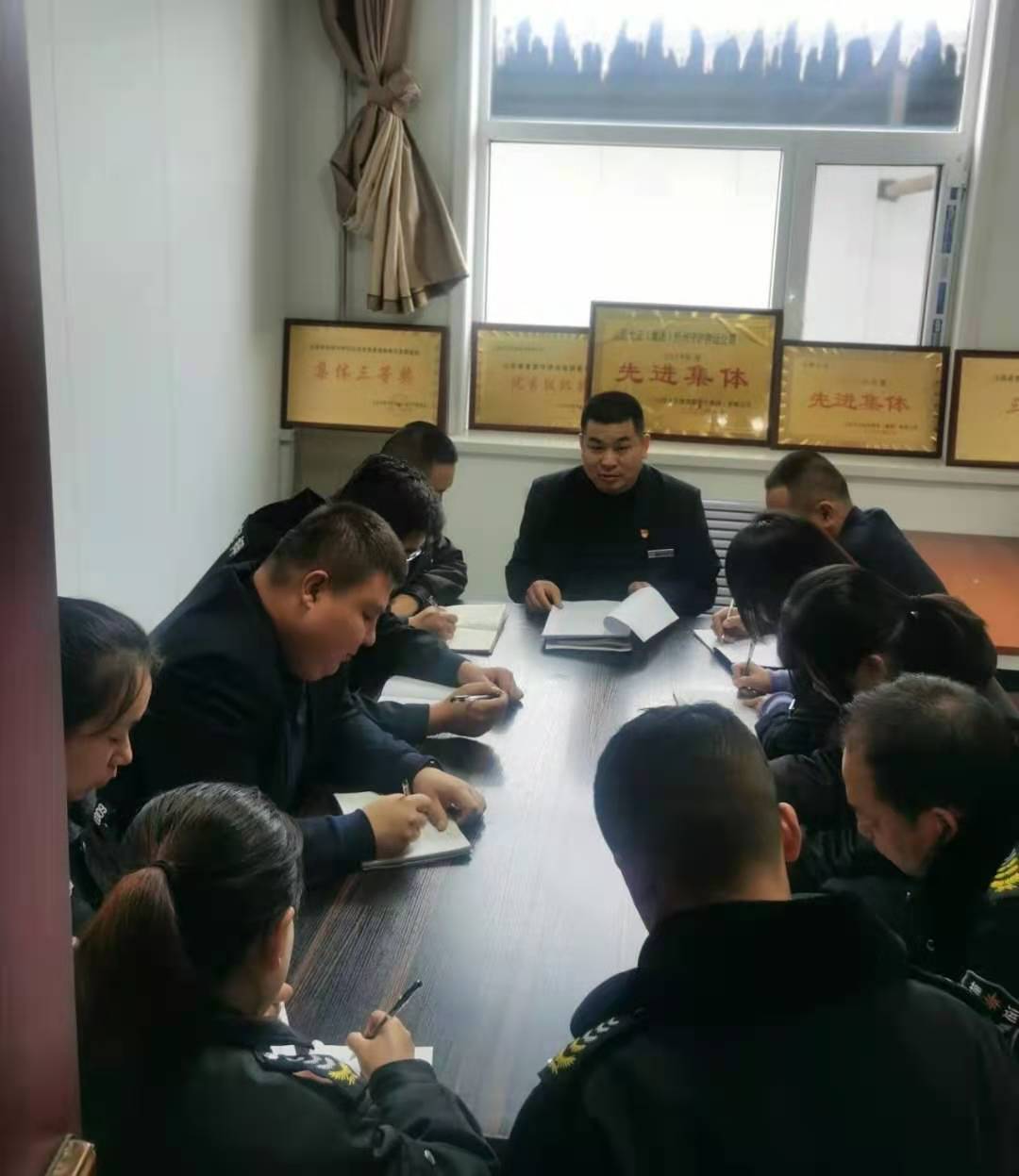 守押一公司于11月23日下午,在駐地會(huì)議室開展《紀(jì)律作風(fēng)集中整治活動(dòng)學(xué)習(xí)計(jì)劃》會(huì)議,會(huì)議由守押一公司經(jīng)理?xiàng)钯F文主持,副經(jīng)理王建民、王孝兵,及各中隊(duì)中隊(duì)長(zhǎng)、副中隊(duì)長(zhǎng)等參加會(huì)議。