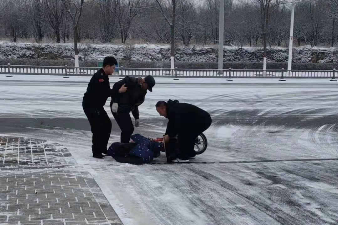 保安直屬公司員工伸援手救助雪天摔倒群眾