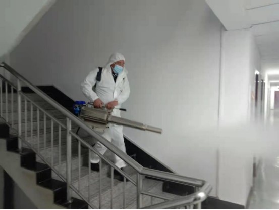會后億通公司立即與藍天救援隊聯(lián)系,采用彌霧器等專用消毒設(shè)備,利用下班時間人員不在辦公場所時間,為兄弟單位、食堂進行了全覆蓋、無死角、高強度的全面消毒。
