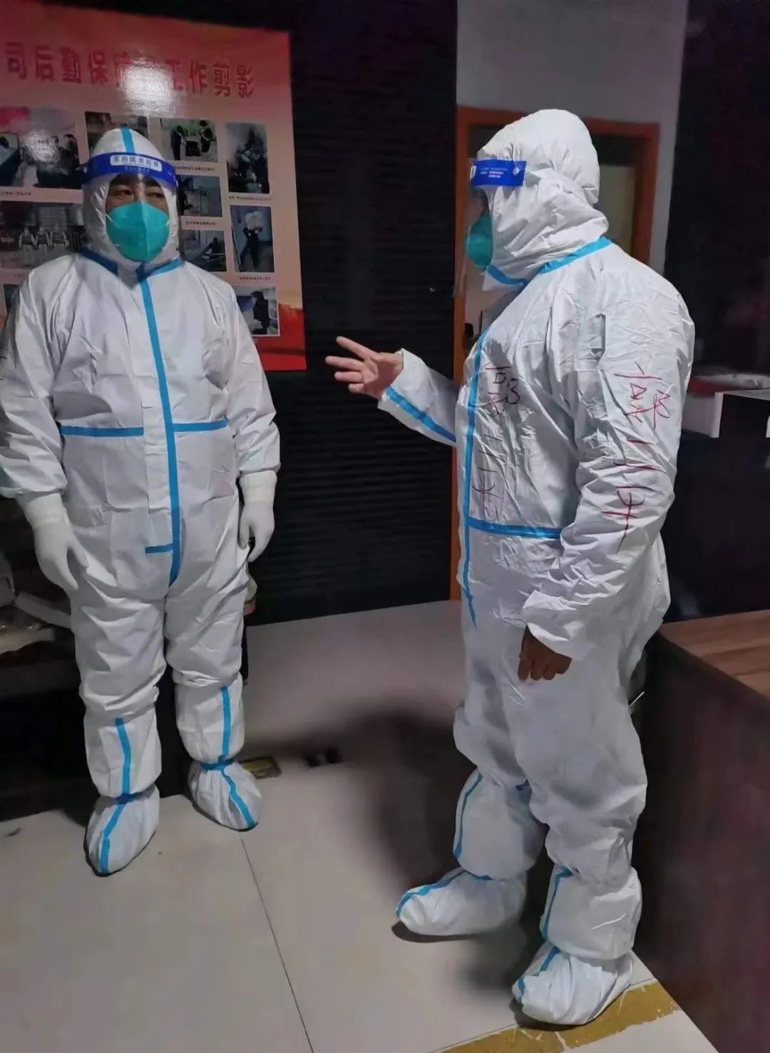 11月20日,對(duì)于堅(jiān)守在師院東區(qū)的大正來說,也是一個(gè)特別的日子,因?yàn)榻裢恚S著隔離轉(zhuǎn)運(yùn)人員集中隔離觀察期時(shí)間已到,有1017名的集中隔離人員根據(jù)疫情防控要求可以轉(zhuǎn)運(yùn)回各自家中進(jìn)行居家隔離觀察,億通公司經(jīng)理郭二平在接到協(xié)同醫(yī)護(hù)人員轉(zhuǎn)運(yùn)隔離人員任務(wù)后,第一時(shí)間組織、部署隊(duì)員們投身到這次任務(wù)中,工作區(qū)的18名同志全員參與。出發(fā)前,經(jīng)理郭二平召開了動(dòng)員會(huì),一遍遍叮囑隊(duì)員們要如何做好防護(hù),要如何以一個(gè)大正人的形象在保護(hù)自己的同時(shí)保質(zhì)保量的完成使命,就像一個(gè)家庭的家長(zhǎng)一樣,挨個(gè)檢查隊(duì)員們的防護(hù)服是否都按要求穿著規(guī)范,從晚上7點(diǎn)鐘到次日5點(diǎn)鐘,一直和隊(duì)員們并肩作戰(zhàn),直至回到師院東區(qū)工作區(qū)隊(duì)員們都回到各自宿舍,他才回去安心睡覺,在本就悶熱的防護(hù)服下,隊(duì)員們都是個(gè)個(gè)滿頭大汗,汗?jié)窦贡,甚至有個(gè)別隊(duì)員出現(xiàn)胸悶、惡心等癥狀,但都沒有一個(gè)人抱怨,沒有一個(gè)人思想動(dòng)搖,這種滋味我們難以感同身受,只能說,在前方負(fù)重前行的你們是好樣的,是我們的驕傲和標(biāo)桿。