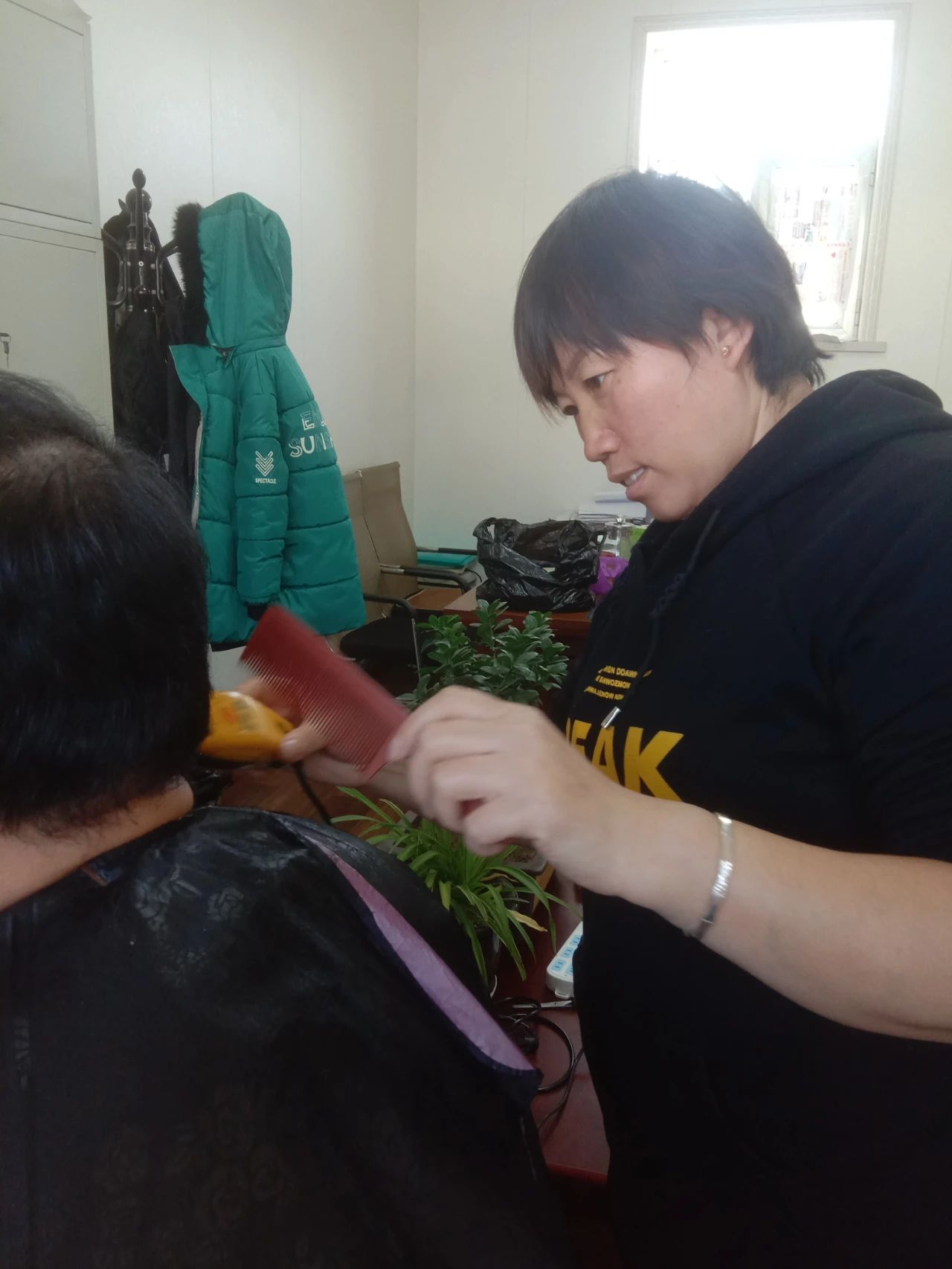 本輪疫情發(fā)生以來(lái),集團(tuán)公司值班留守人員100余人,堅(jiān)守抗疫后方“大本營(yíng)”,廢寢忘食積極投身公司工作正常運(yùn)轉(zhuǎn)、疫情防控宣傳、后勤服務(wù)保障等當(dāng)前各項(xiàng)重要工作當(dāng)中,連續(xù)半個(gè)多月來(lái)舍“小家”顧“大家”,日漸“茂盛”的頭頂逐漸成為很多人的“小煩惱”。但疫情無(wú)情人有情,大正巾幗,她們用自己靈巧的雙手、熱情的服務(wù),用心用情為一位位堅(jiān)守崗位的大正人剪去“煩惱絲”,解決“頭等事”。她們就是正大物業(yè)管理有限公司李苗同志、億通公司的常轉(zhuǎn)枝、高艷芳同志,隨著剪刀上下翻飛、頭發(fā)簌簌掉落……一張張清新颯爽、精神抖擻的面容出現(xiàn)在大家面前。疫情當(dāng)前,大正巾幗一起以默默無(wú)聞地付出溫暖每一位戰(zhàn)“疫”勇士的心。