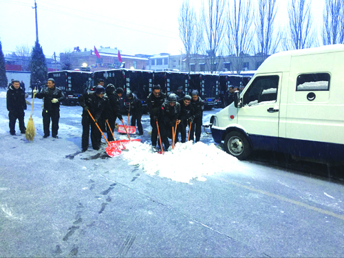 一上班,公司便安排機(jī)關(guān)職工、各駐勤點(diǎn)、中心庫(kù)隊(duì)員等清掃院內(nèi)、門(mén)外大街上的積雪,大家不畏嚴(yán)寒,頂著風(fēng)雪,揮舞鐵鍬掃把,干的熱火朝天,不亦樂(lè)乎,忙碌的身影構(gòu)成了一道亮麗的風(fēng)景線。雖然室外溫度很低,但大家勞動(dòng)的熱情和團(tuán)結(jié)的力量讓這個(gè)冬日變得格外溫暖。經(jīng)過(guò)一個(gè)多小時(shí)的奮戰(zhàn),大家終于將機(jī)關(guān)、中隊(duì)院內(nèi)及附近主干道等地的積雪全部鏟除,為員工和附近居民開(kāi)辟了一條洋溢著溫情的通暢之路。雖然大家的衣服、鞋子都弄濕了,也出了一身的汗,可看著眼前的成果,大家都很有成就感,每個(gè)人的臉上都洋溢著開(kāi)心的笑容。