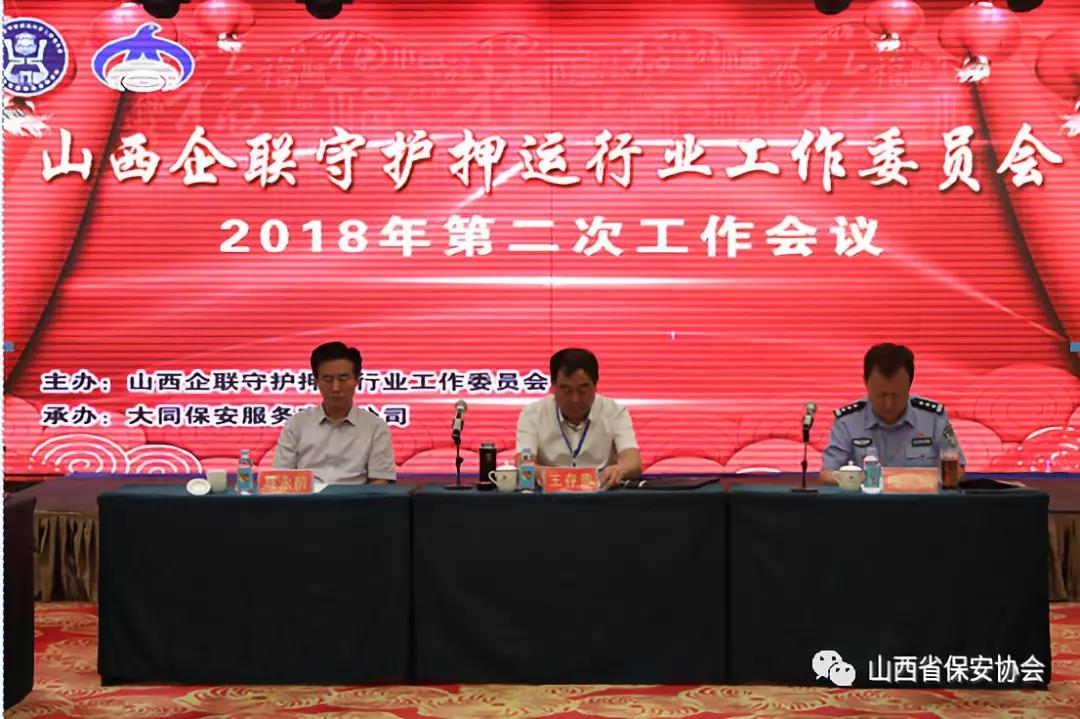 2018年7月13日,山西企聯(lián)守護(hù)押運(yùn)行業(yè)工作委員會2018年度第二次工作會議在大同召開。本次會議由山西企聯(lián)守護(hù)押運(yùn)行業(yè)工作委員會常務(wù)副主任委員張躍生同志主持。市國資委和市公安局相關(guān)領(lǐng)導(dǎo)同志參加了會議。會議組織學(xué)習(xí)了公安部下發(fā)的《保安守護(hù)押運(yùn)公司管理規(guī)定》,并就如何提升新時代武裝守護(hù)押運(yùn)業(yè)服務(wù)水平,推動武裝守護(hù)押運(yùn)行業(yè)不斷開創(chuàng)新局面等問題開展了討論。