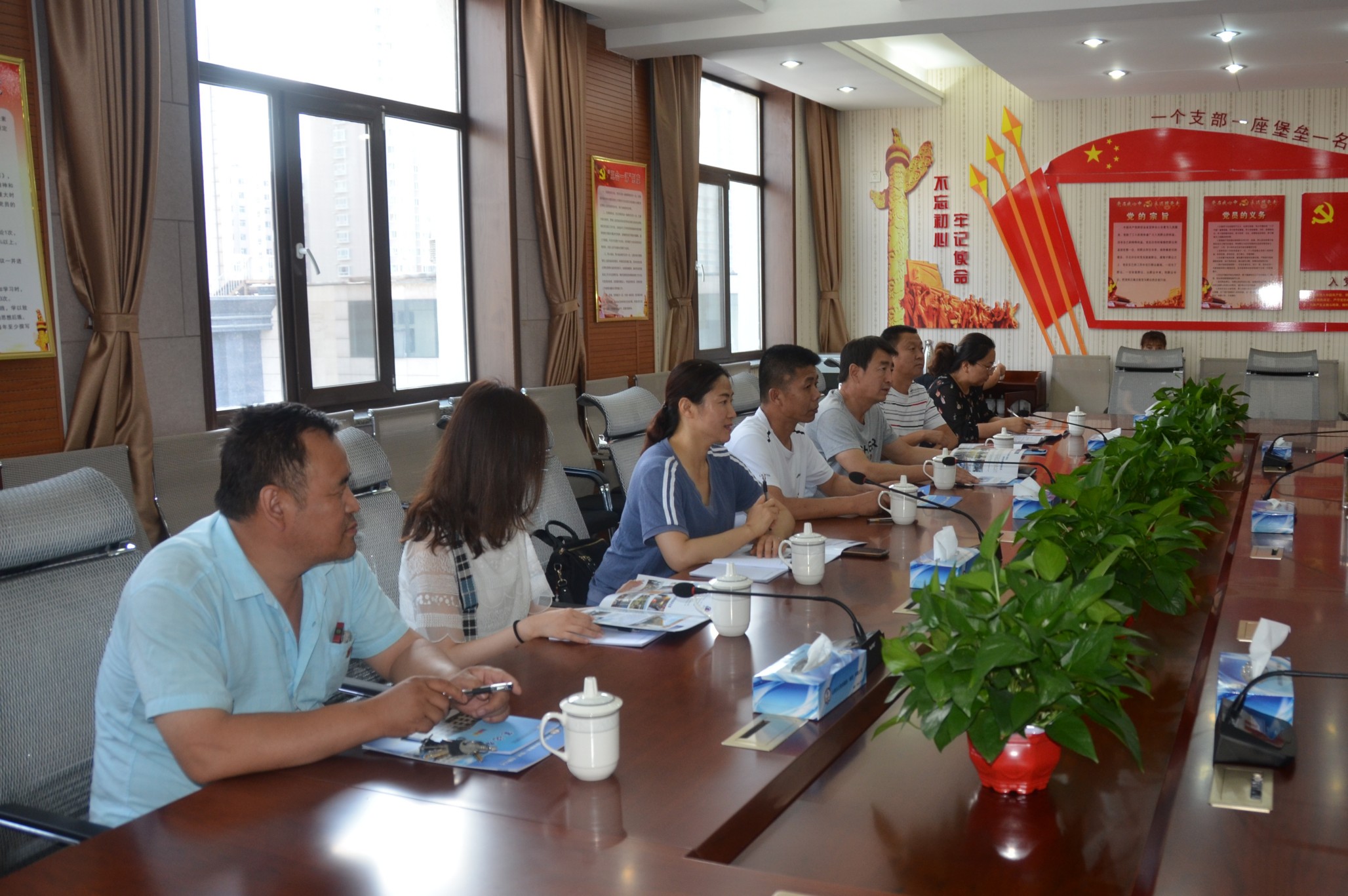 7月5日,忻州市水務有限責任公司黨群工作部組織基層黨支部書記一行7人來我公司考察交流黨建工作。