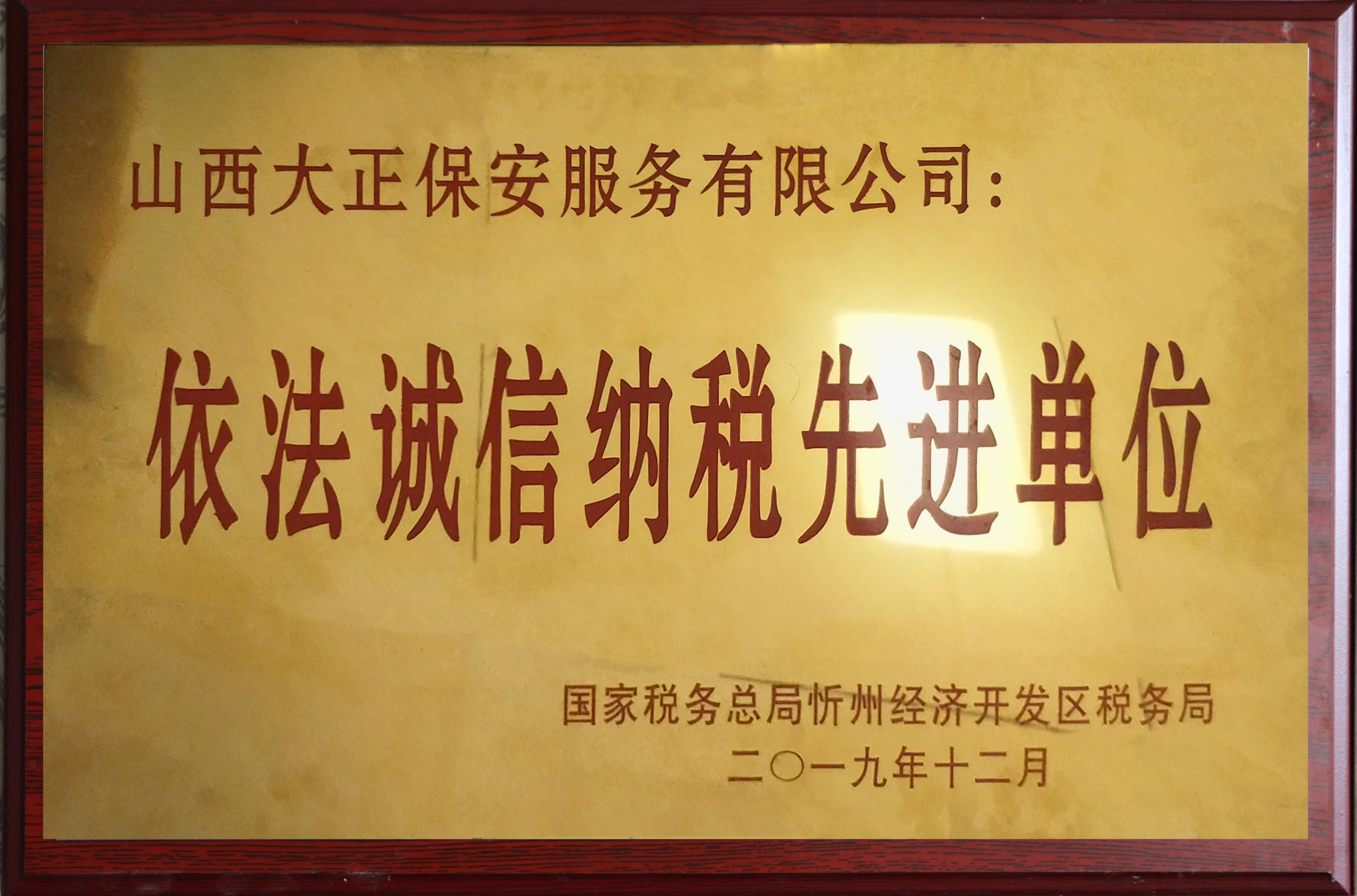 12月15日,國家稅務(wù)總局忻州經(jīng)濟開發(fā)區(qū)稅務(wù)局舉行2019年度“依法誠信納稅先進單位”頒獎儀式。山西大正保安服務(wù)(集團)有限公司等9家企業(yè)榮獲2019年度“依法誠信納稅先進單位”稱號。集團公司黨委委員、副總經(jīng)理趙培宏代表公司參加儀式并上臺領(lǐng)獎。