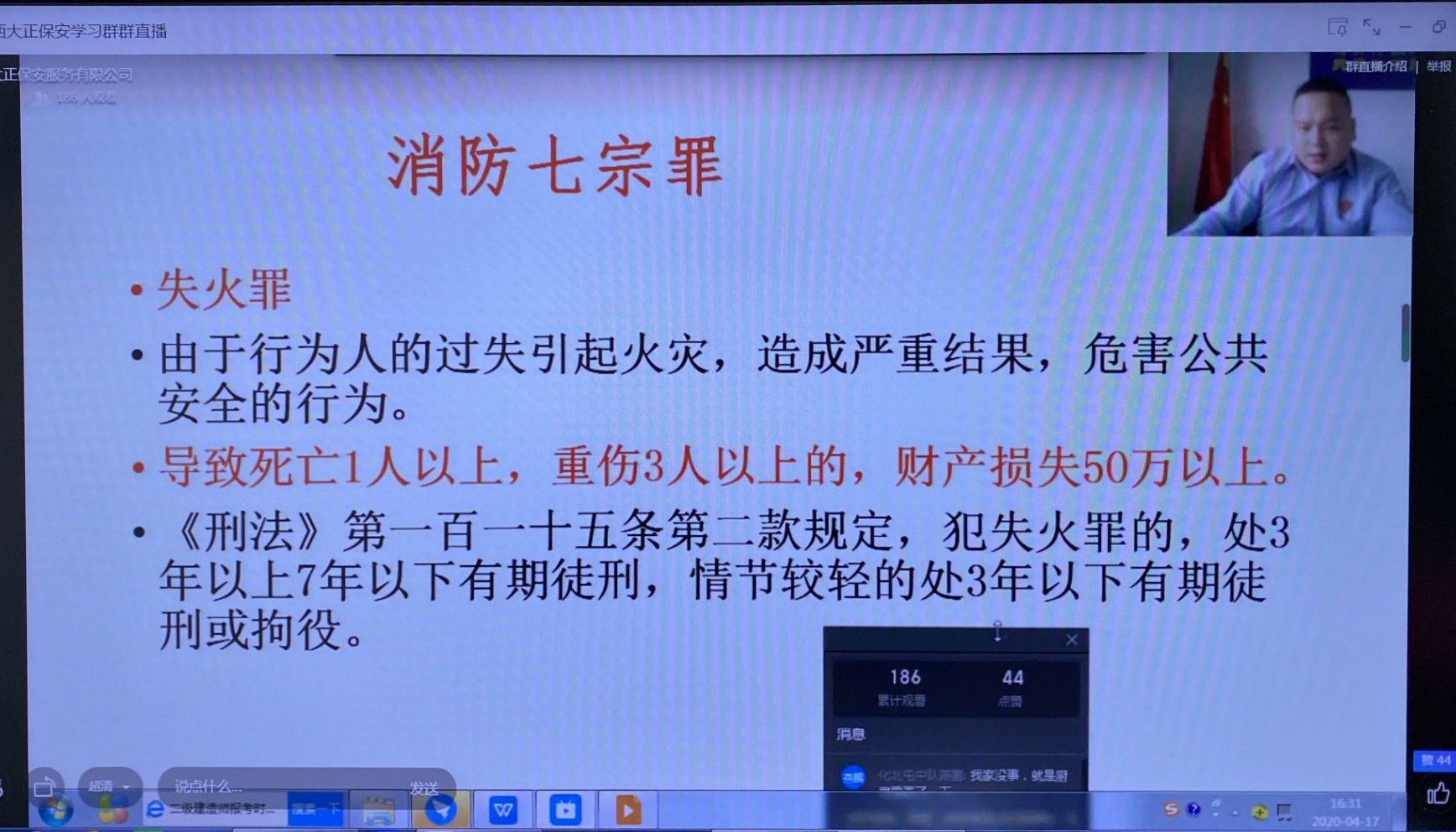 為響應(yīng)國家號(hào)召,貫徹“預(yù)防為主,防消結(jié)合”的方針,做到科學(xué)應(yīng)對(duì),力求人人講安全,人人會(huì)安全。4月17日,公司特邀山西陽光眾安消防科技有限公司忻州分公司講師黃前對(duì)我公司員工進(jìn)行線上安全教學(xué)。公司機(jī)關(guān)干部、全體黨員等200余人參加。