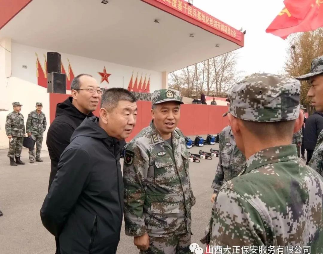 10月27日上午,忻府區(qū)基干民兵基地化輪訓(xùn)開訓(xùn)動員大會在原平市民兵訓(xùn)練基地舉行。忻州市軍分區(qū)司令員曲君、忻府區(qū)武裝部政委劉啟國、部長李強(qiáng)、山西大正集團(tuán)公司黨委書記、董事長張躍生,黨委委員、副總經(jīng)理王明生出席。公司和忻府區(qū)其他單位民兵隊員200余人參加。